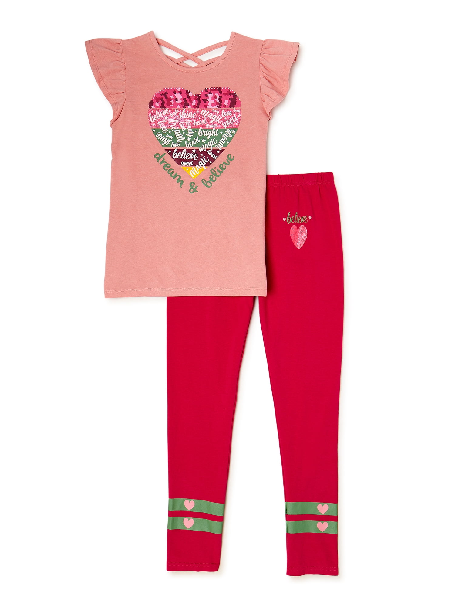 Pink Velvet Girls Sequin Graphic Short Sleeve T Shirt And Printed Leggings Set 2 Piece Set Sizes 4 12 Walmart Com